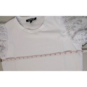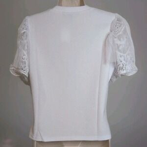 Love 83 Women's White Lace Puff Sleeve Crew Neck T-Shirt Blouse NWT Size M/L
