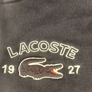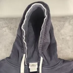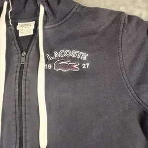 Lacoste Navy Zip-Up Hoodie with White Trim Size Large