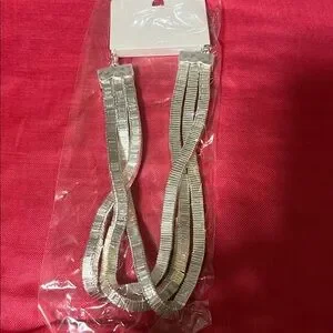 Eye-catching silver tone multi-strand herringbone necklace. Sleek polished finish for a modern, layered look. Lightweight and comfortable for everyday or dressy occasions. Featuring secure clasp and adjustable chain. A versatile silver tone piece to elevate any outfit.