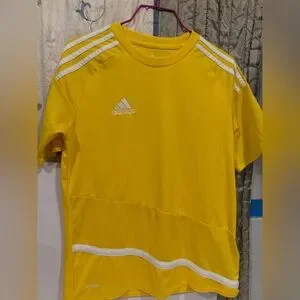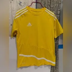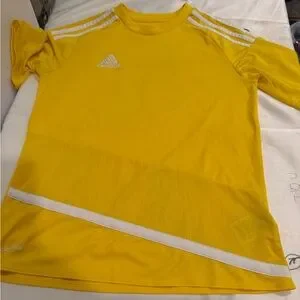 Vibrant yellow jersey with white accents. Ideal for sports and play. Comfortable and stylish design.