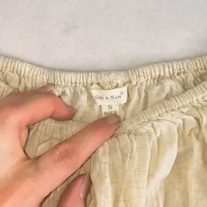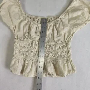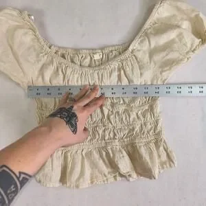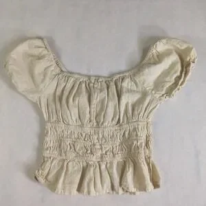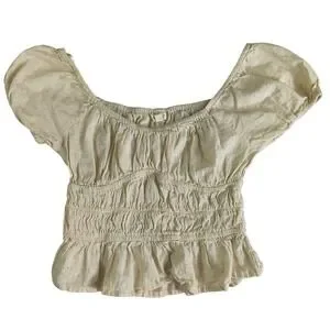 Sim & Sam Cream Linen Blend Smocked Peplum cropped Blouse Small Cottagecore boho