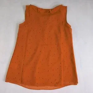 Cabi Orange Ruffle Neck Sleeveless Blouse Womens XS Polka Dot Tie Neck Top