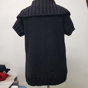 Kenneth Cole Black Short Sleeve Knit Cardigan Sweater with Ribbed Collar Small