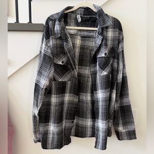 Stylish black and white plaid shirt featuring a bold Iowa Hawkeyes graphic on the back.