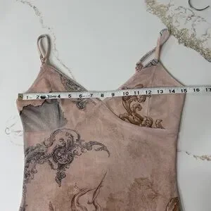 Soft pink slip maxi with ornate baroque scroll crane print. Elegant and feminine look. Perfect for evening or special occasions.