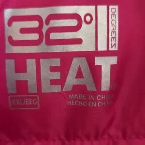 Lightweight quilted puffer jacket by 32 Degrees. Bright hot pink exterior with full front zipper. Two zippered hand pockets. Stand collar for added warmth. Simple, sporty style for everyday wear.