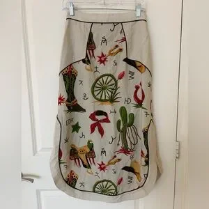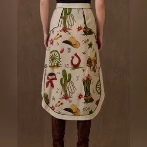 NWT and in perfect condition. The silhouettes are what really sets this entire collection apart, and this chic and charming skirt is a prime example. The classic A-line gets an upgrade with a full front pearl snap placket and an alluring curved hem that hits at a midi length – perfect for showing off those peewee boots! It’s adorned with this season’s signature print that’s reminiscent of retro Western wallpaper and accented with contrast trim and welts.