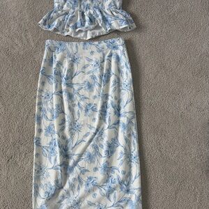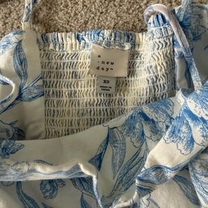 a new day White and Blue Floral Top
