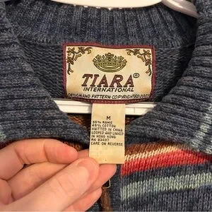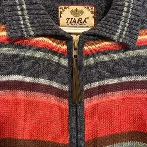 Vibrant striped sweater with a zip-up front. Ideal for casual outings. Size medium. Cotton blend. No flaws.