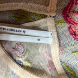 Anthropologie Layla Floral Embroidered Sheer Mesh Top