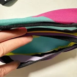 Disneyland After Dark 90s Nite retro fanny pack. Collectible park exclusive, only available with entry to event. Adjustable waist strap. Retro design, color block purple, teal, pink and yellow. Two zipper sections. Excellent used condition, only used once. Feel free to ask any questions.