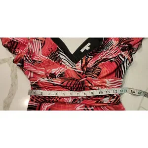 Sandra Darren 14P Petite Tropical Print Wrap Dress Pink Coral V-Neck Flutter
