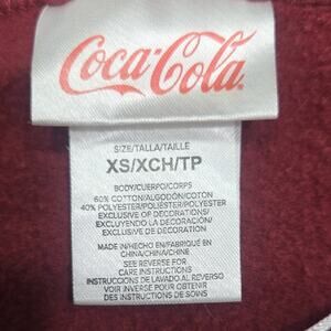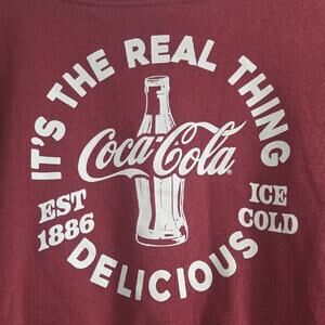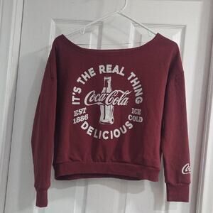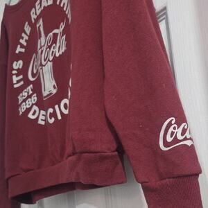 Burgundy sweatshirt featuring Coca-Cola logo and text in white. Includes classic bottle design.
