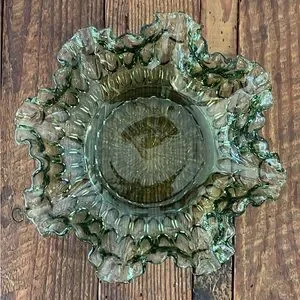 Vintage Ruffled Green Fenton Glass Bowl