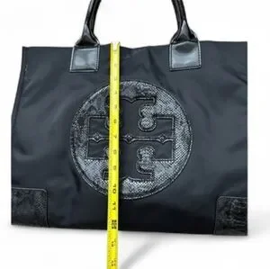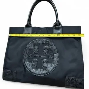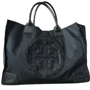authentic Tory Burch Ella nylon Tote bag in Black Snake Print. great condition. Minimal wear Rare snake print on accents of bag (in leather)