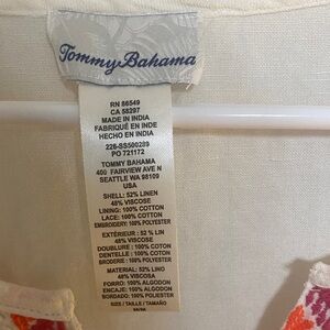 Tommy Bahama White Tunic with Coral and Pink Embroidery Linen Blend
