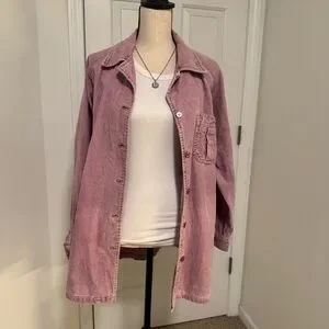 Vintage 90s Pink Corduroy Shacket Distressed Soft Grunge Oversized XL