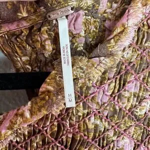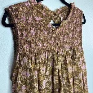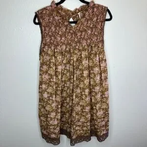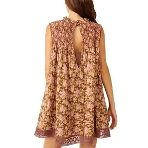 Free People Women's Shea Printed Mini Dress Floral Smocked Brown Pink Medium