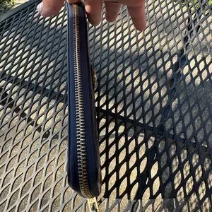 Chic Tory Burch wallet in dark navy. Embossed logo pattern with zip closure. 4.5”x8.5”