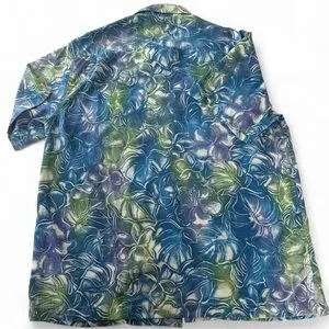 Tommy Bahama Mens Short Sleeve Silk Shirt Floral Hazy Hibiscus Blue Green $150 L