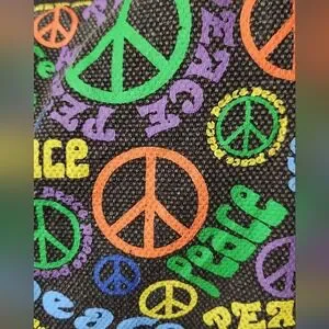 Chic 777 Lucky Brand canvas hobo tote with bold color "peace" design. Perfect for daily essentials.