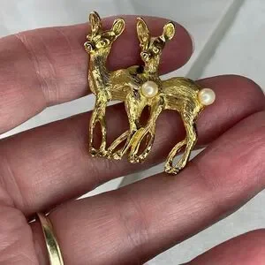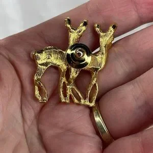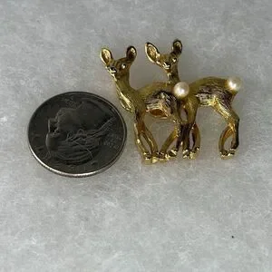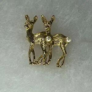 Vintage Avon twin fawns faux fur tails pin brooch. Quite hefty. Gold tone metal.