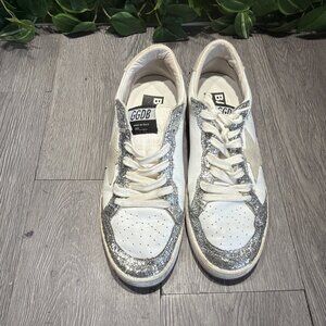 Golden Goose Ballstar Sneakers White Silver Glitter Star Size 39