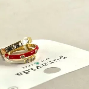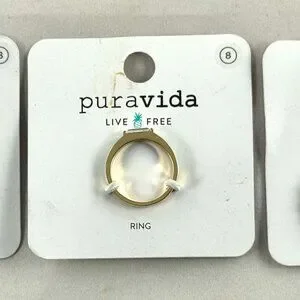 You are getting a group of stackable rings by Puravida. As shown in the photos, one card has three stackable rings, the other cards each have one. All are a size 8. No condition issues.