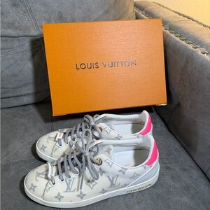 Elegant Louis Vuitton sneakers with signature monogram. Cream and gray tones. Good condition!!! Please feel free to ask any questions before buying.