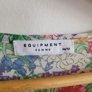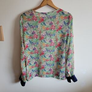 Equipment Femme 100% Silk Sheer Long Sleeve Blouse Floral Contrast Cuff Medium M