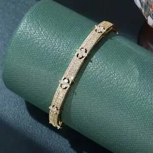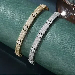 Gold Plated Stainless Steel Cubic Zirconia Clover Bangle Bracelet