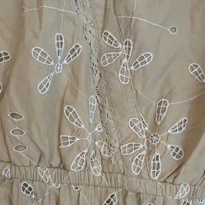 Ralph Lauren Tan Embroidered Midi Dress