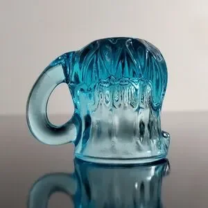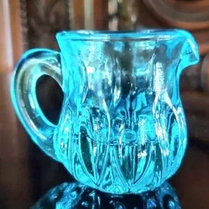 GLOWS Degenhart Aqua Blue Glass Mini Pitcher Toothpick Holder