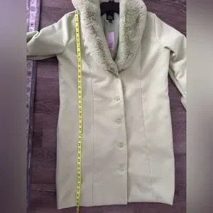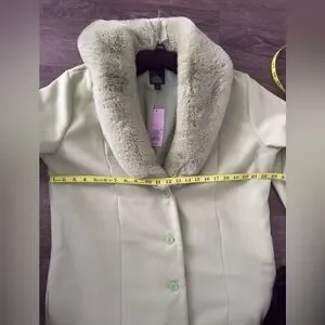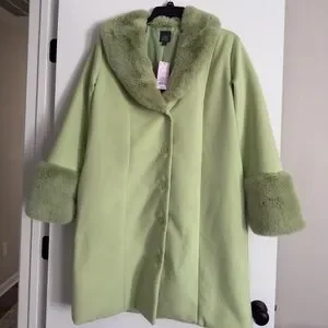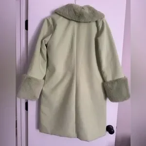 NWT Wild Fable Women's SZL mint green coat w/faux fur collar and sleeves. Button front. Stylish and fun