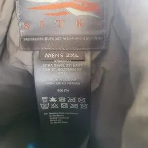 NWOT Sitka DUCK OVEN insulated jacket in warm brown tones. Sitka the best of the best specialized outdoor wear and equipment hunting gear. Full front zip with chest and sherpa insulated hand pockets. Soft collar and the #1 rated for cold durability. Clean, versatile style for any hunting outdoor adventure. excellent brand new condition.