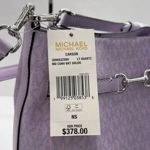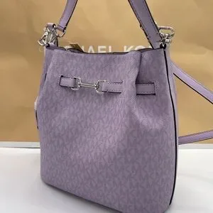 MICHAEL KORS Carson Md Logo Convertible Bucket Crossbody Shoulder Lt Quartz NWT