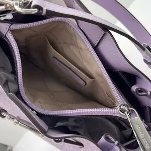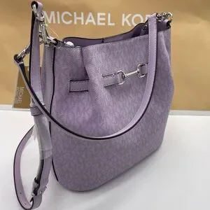 Chic and stylish light purple shoulder bag. Features signature design and silver accents. Perfect for any occasion.