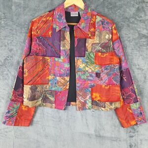 Chicos Jacket 1 Medium Silk Patchwork Artsy Art To Wear Colorful Floral Boho