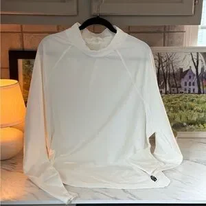 Features: Premium cotton construction; 2-ply foldover mock neck collar; extra-long, roomy raglan sleeves; scrunched cuffs;