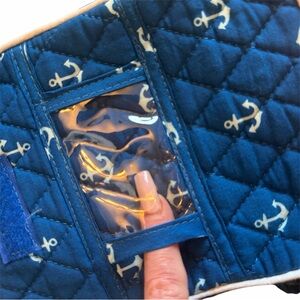 Up for sale is a stylish and lightweight quilted crossbody bag from Darice. Featuring a classic navy blue exterior with a crisp white anchor print, this bag is perfect for beach days, vacations, or everyday summer use.