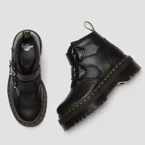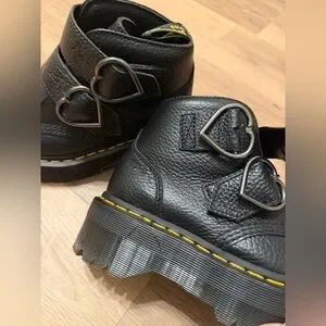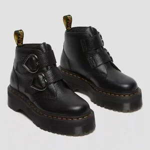 Dr. Martens Black Devon Heart Buckle Platform Boots