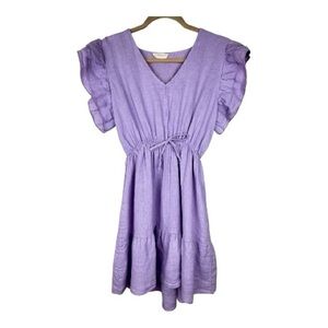 Mimü Madrid | 100% Linen Lavender Tiered Dress | Size Small