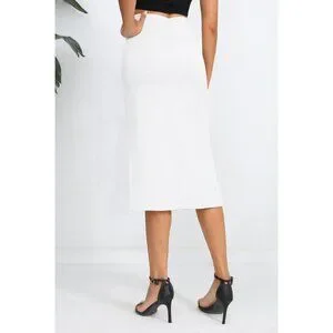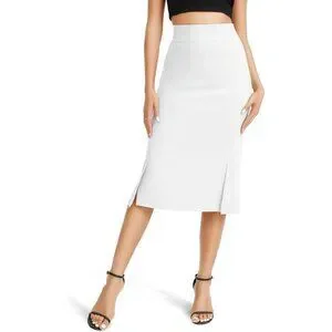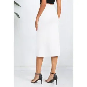 Women's White Stretch Office Fishtail Pencil High Waist Bodycon Slit Midi Skirt