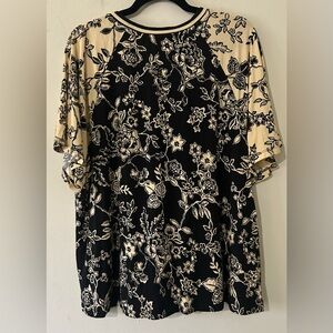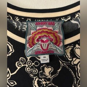Johnny Was Black and Cream Floral Blouse
