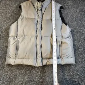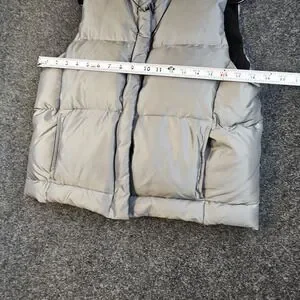 This Vintage GAP Down Puffer Vest is a stylish and practical piece for men's winter fashion. Made with a soft nylon outer shell and insulated with down, this vest is perfect for outdoor activities like hiking or skiing. The silver gray color and retro 90s style give it a classic yet trendy look, while features like zipped pockets, quick dry technology, and water resistance make it a versatile option for casual, travel, or workwear occasions. With a stand-up collar and a regular fit, this vest combines comfort and functionality for the modern man.