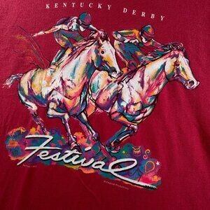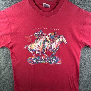 VTG Kentucky Derby 1997 Red T Shirt USA Large Short Sleeve Cotton Horse Racing