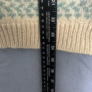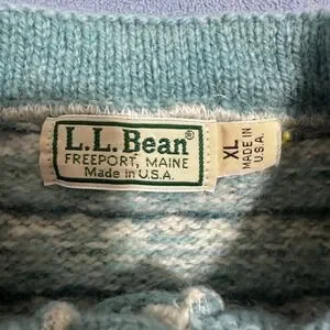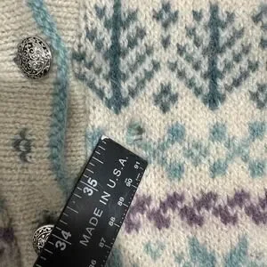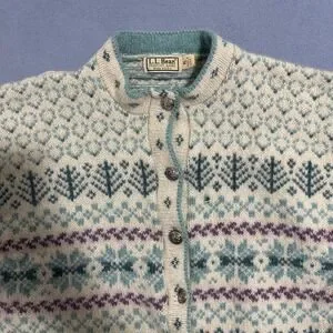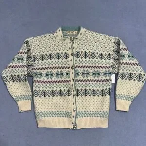 L.L. Bean Vintage Nordic Wool Cardigan Fair Isle Teal Cream Womens Size XL