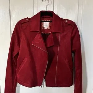 LC Lauren Conrad faux suede moto jacket in burgundy.