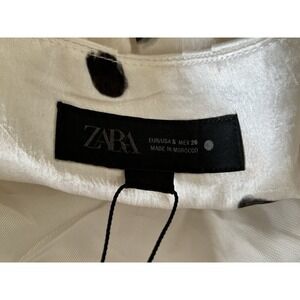 The Zara White Polka Dot Mido Skirt is a stylish and trendy addition to any woman's wardrobe. Featuring an asymmetric hem and a bubble shape, this skirt in size small is perfect for those who want to make a statement. The white polka dot pattern adds a fun and playful touch, while the midi length and midi style make it versatile for both casual and dressy occasions. Made by the popular brand Zara, this skirt is sure to become a favorite piece in any woman's collection.