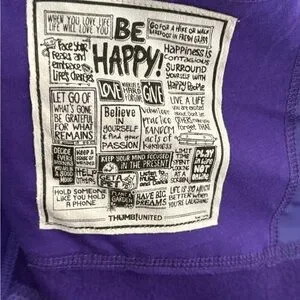 Adorned with faux suede art on the left sleeve, the "End Stupidity" message is a conversation starter. You'll find a daily dose of positivity with our faux suede 'Be Happy' patch.